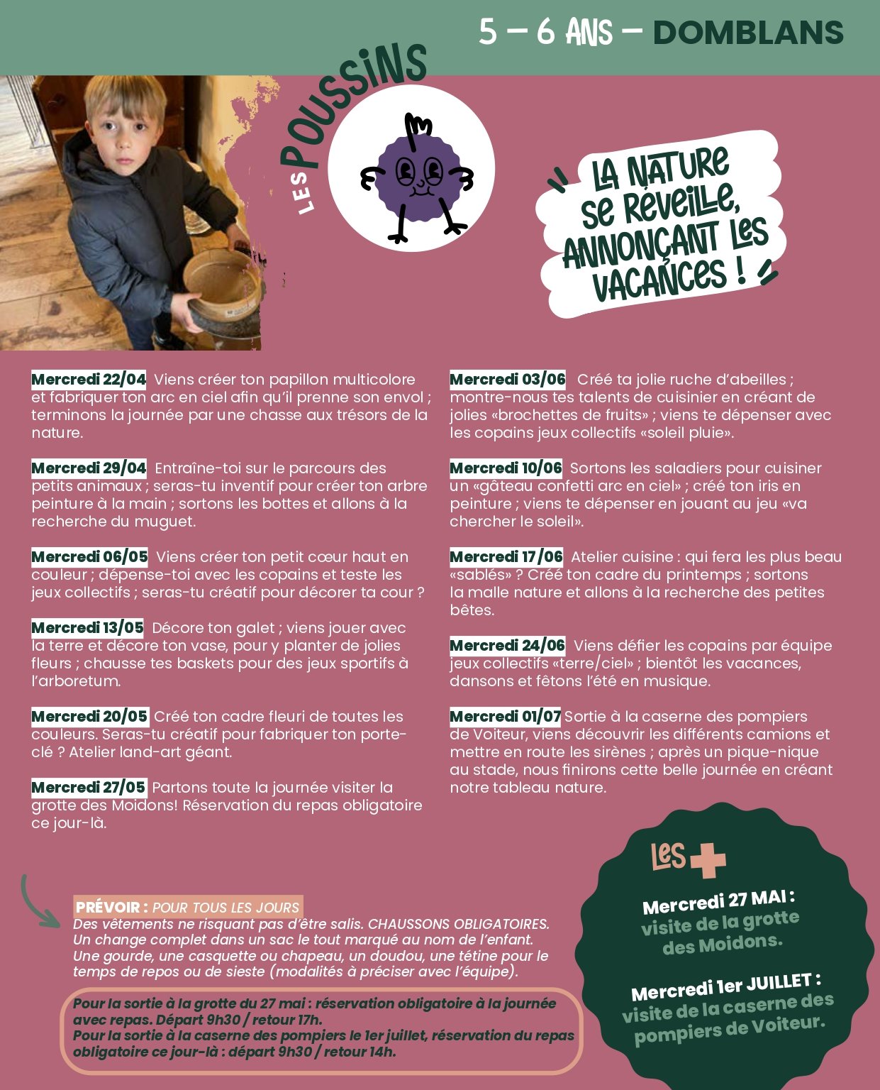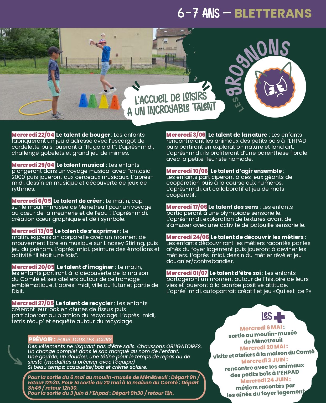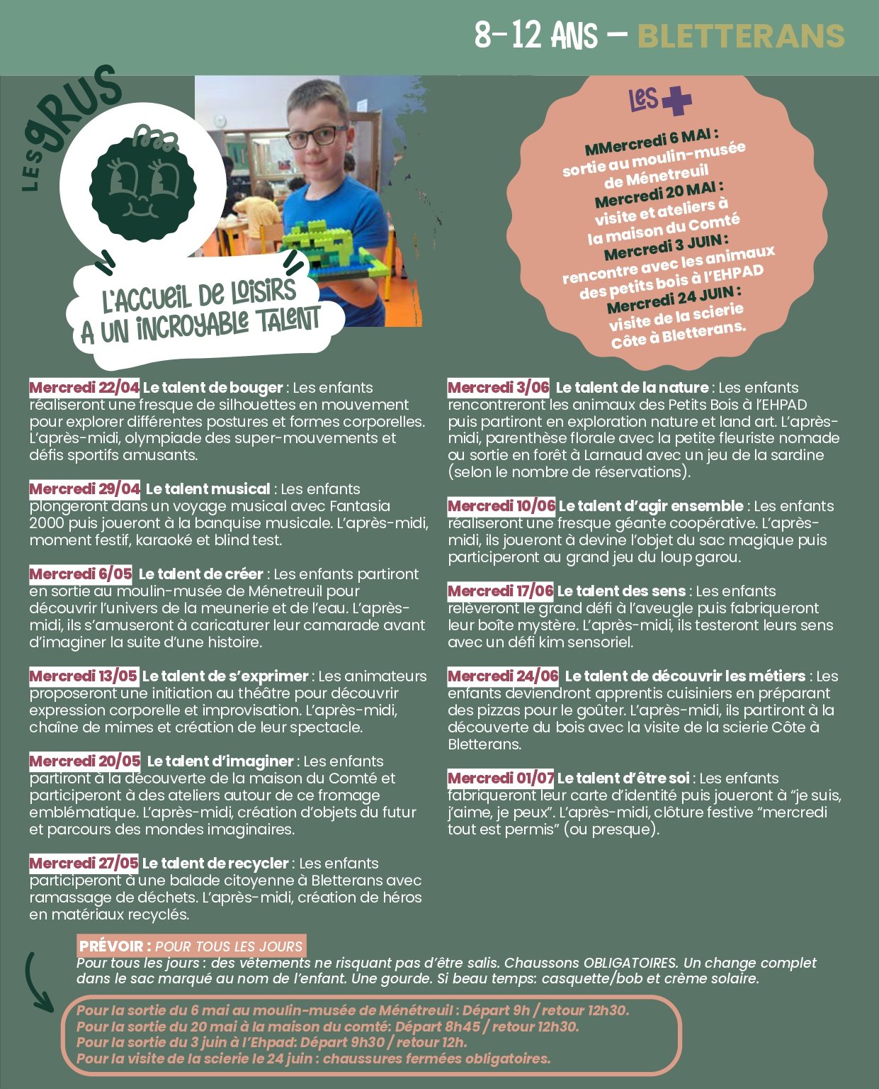 Retrouvez ici le programme des mercredis des accueils de Bletterans et Domblans pour la période avril-mai-juin-juillet 2026. 🌻🌞
