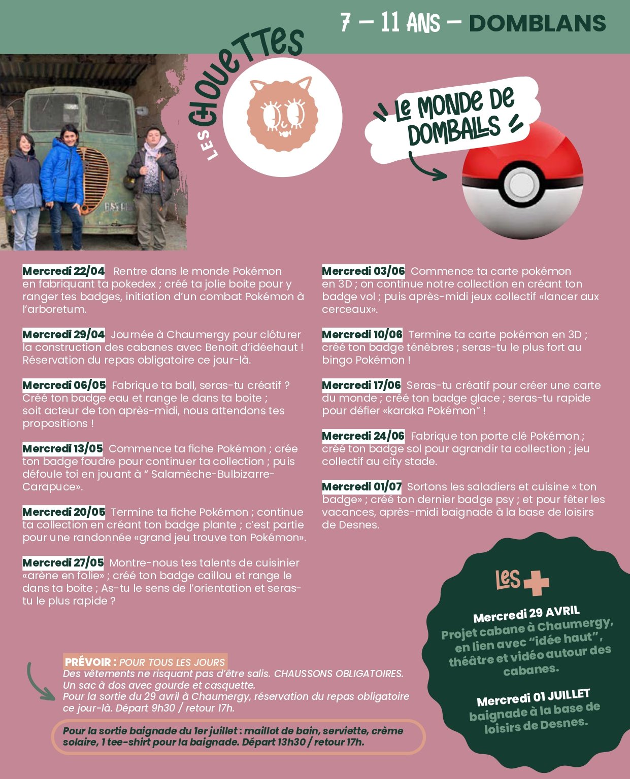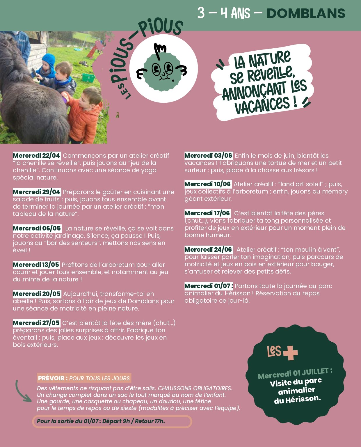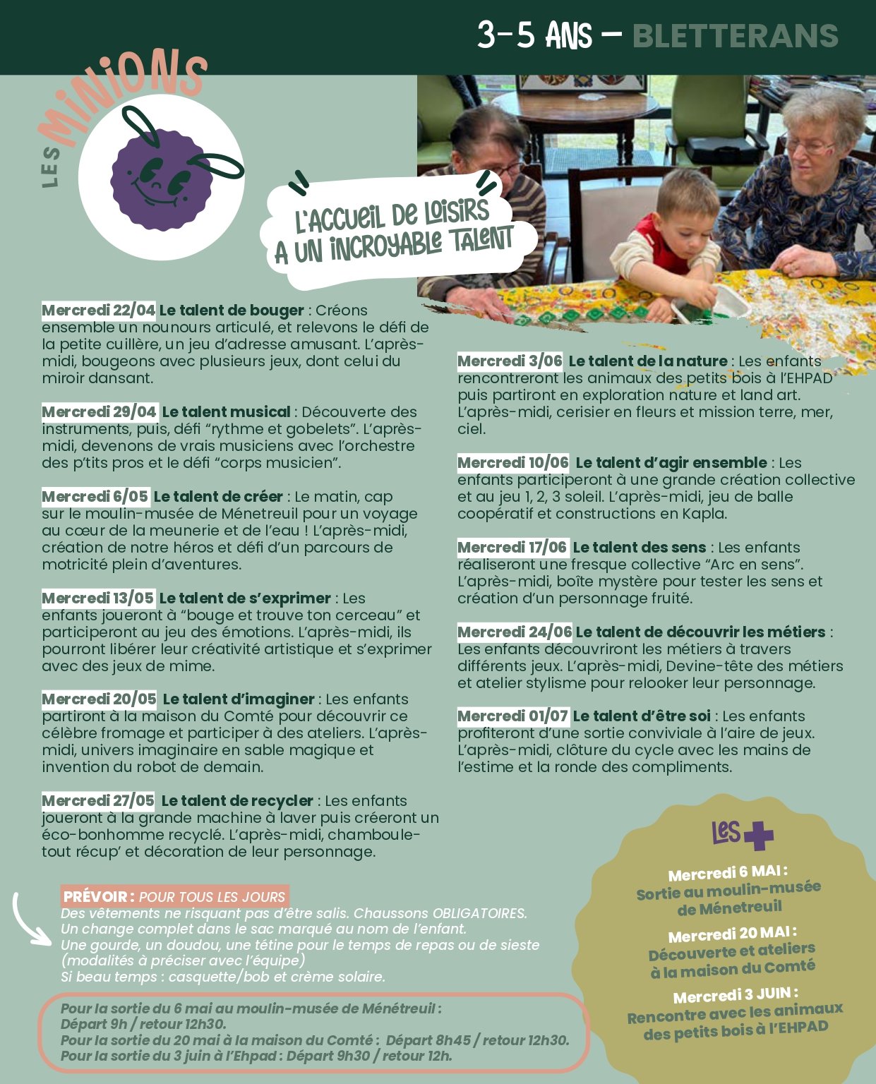 PROGRAMME DES MERCREDIS DES ACCUEILS DE BLETTERANS ET DOMBLANS POUR LA PÉRIODE AVRIL-MAI-JUIN-JUILLET 2026