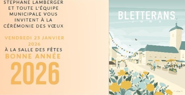 Stéphane Lamberger, maire de Bletterans et l'ensemble du Conseil municipal ont le plaisir d'inviter les habitants et les forces vives du territoire à la cérémonie des vœux 2026 qui se déroulera