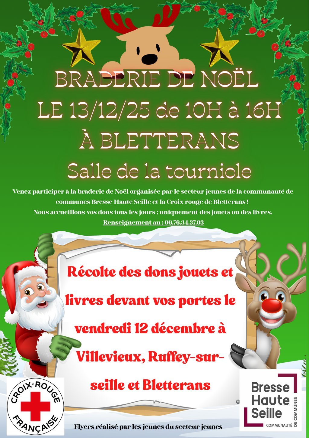 Les jeunes du secteur jeunes Bresse Haute Seille, accompagnés des bénévoles de la Croix-Rouge, vous accueilleront dans leurs locaux, en face de la Poste, pour une Braderie de Noël...